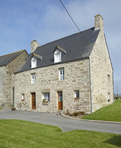 La maison de maître Cette maison présente un plan rectangulaire. Sa maçonnerie est constituée de moellons de granite disposés de manière très soignée et régulière en façade, et d´une part importante de pierres de taille de granite dans la partie basse de la façade, autour des ouvertures et au niveau des chaînages d´angles. Les chaînages d´angles présentent en outre une disposition particulière, propre à ce secteur, où les pierres sont doublées en alternance. Le toit à longs pans est couvert d´ardoise. Le bâtiment comprend un rez-de-chaussée surmonté d´un étage carré et d´un grenier. La porte d´entrée est flanquée de part et d´autres de fenêtres, mais à l´origine la fenêtre de droite était une porte, qui donnait probablement accès à un cellier. On note une différence de niveau entre les parties droite et gauche. A droite, le plafond du cellier était plus bas que dans les pièces de vie de gauche. Cela peut être dû à la présence d´une cave sous la pièce de vie. Les encadrements de baies de la façade reprennent pour la majorité des éléments d´une construction plus ancienne. Ainsi, la porte d´entrée présente un encadrement chanfreiné. Son linteau, droit, est surmonté d´un arc de décharge, comme c´est le cas également sur l´ancienne porte devenue fenêtre. La Métairie Seule une allée carrossable sépare les deux bâtisses. Le logis double présente un plan rectangulaire et une envergure générale proche de la maison voisine. La maçonnerie est constituée de moellons de granite et de schiste et de pierres de taille de granite dans les encadrements et les chaînages d´angles. Les chaînages sont également constitués d´un doublage des pierres. Le toit à longs pans, percé de deux lucarnes, est couvert d´ardoise. Les deux logis étaient constitués à l´origine d´une pièce au rez-de-chaussée et d´une chambre à l´étage. Des remaniements ont été effectués à la fin du siècle dernier. Sur la partie ouest, la porte et la fenêtre ont été interverties. Le linteau sculpté, portant l´inscription « Fait par Anne Michel et Enfans 1796 », se retrouve donc aujourd´hui au-dessus de la fenêtre. Cette même fenêtre présente un appui saillant. Cet élément est un remploi d´une construction antérieure car ce type de décor n´est plus d´usage dans les constructions de la fin du 18e siècle. Une petite ouverture a été ajoutée sur la partie ouest lors des derniers travaux et fait écho à l´ouverture de la partie est.