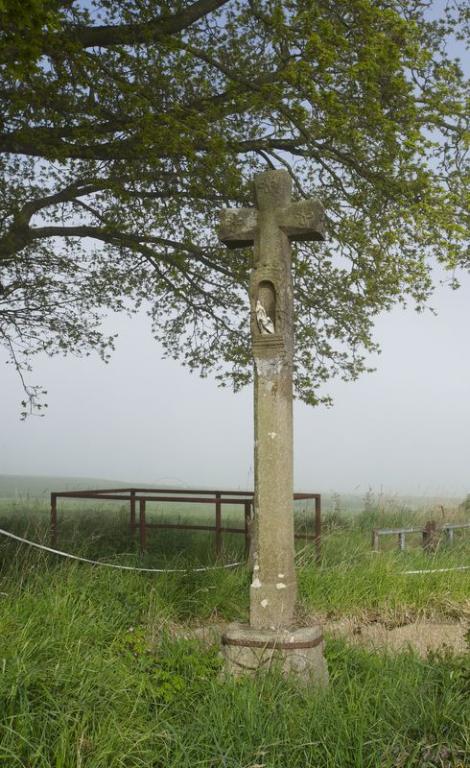 La croix des Primevères à fût octogonal, placée sur socle, se caractérise essentiellement par un écusson sur lequel sont gravés l'intérieur d'une main gauche et des animaux ressemblant à des léopards. Il s'agit peut-être d'une allusion à la famille de Malemain, originaire de Normandie.