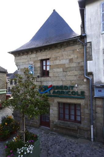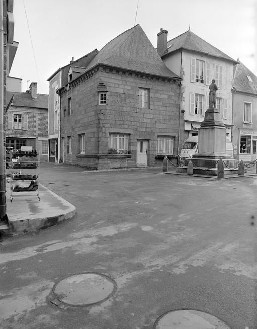Cette maison est construite en grand appareil de pierre de taille de granite. Située à l'angle d'une place, elle possède des ouvertures sur ses deux côtés : plusieurs au rez-de-chaussée, notamment de grandes baies avec étal, une sur chaque façade donnant sur la rue à l'étage avec une autre située à l'angle et un petit jour éclairant vraisemblablement la montée d'un escalier. Le toit est à croupe, couvert en ardoise et sa pente est brisée par un coyau ; il est percé d'une lucarne. Cette maison présente également une corniche de toit à modillons sculptés.