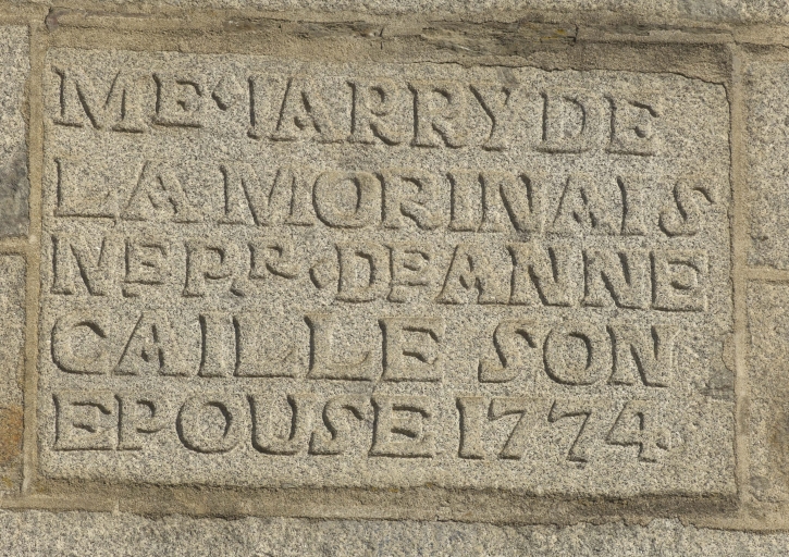 Cette inscription nous permet également de connaître l’identité des commanditaires du bâtiment, il s'agit de Me JARRY DE LA MORINAIS et de son épouse ANNE CAILLE. Ainsi, en 1753, Anne Caillé épouse-t-elle Julien Jarry de la Morinais.