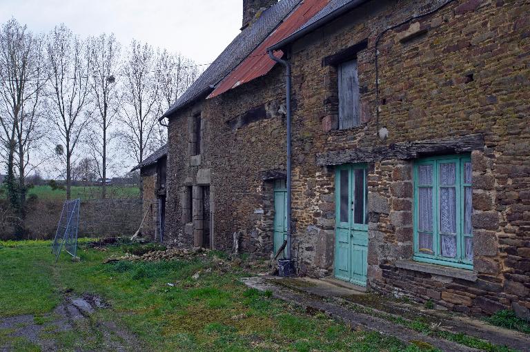 Une particularité dans la mise en œuvre des chaînes d'angle à deux rangs de "carreaux", selon une formule plus répandue dans le Coglais, (ex : La Perrière sur Bazouges-la-Pérouse, Le Chalonge sur Noyal-sous-Bazouges).