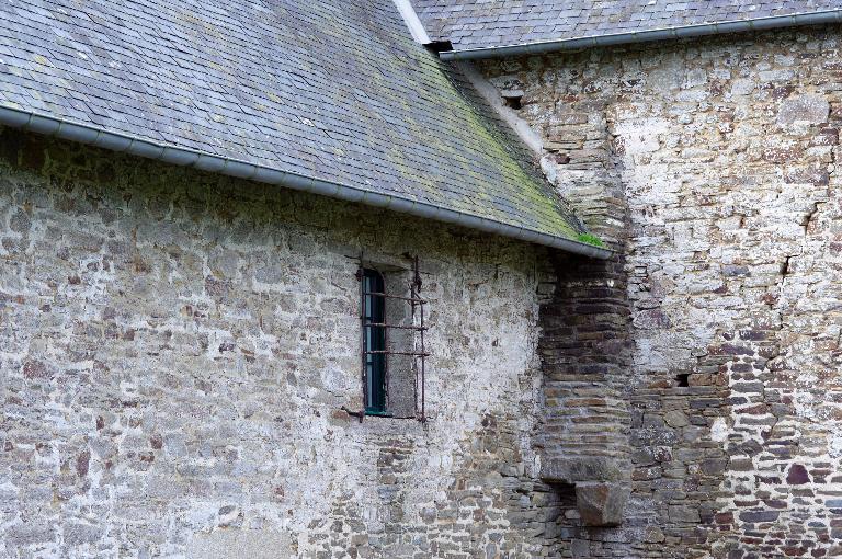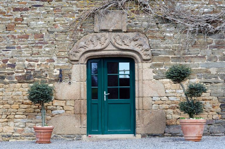 L'élévation sud à travées est irrégulière. Elle est percée d'une porte moulurée d'un tore à listel et d'un cavet et dont le linteau en accolade est orné de crochets et d'animaux en bas-relief avec un blason muet ; et d'une porte en anse de panier avec un décor de cercles sur le linteau. Les linteaux des autres ouvertures présentent un décor de boules sur le chanfrein, de même sur les dépendances.