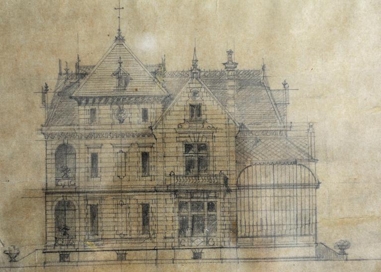 Le comble habitable est éclairé par d’étroites lucarnes en bois dont les frontons triangulaires sont surmontés de pots-à-feu. Des œils-de-bœuf de faible dimension éclairent le comble supérieur. Le bleu de l’ardoise enrichit la polychromie de l’édifice.