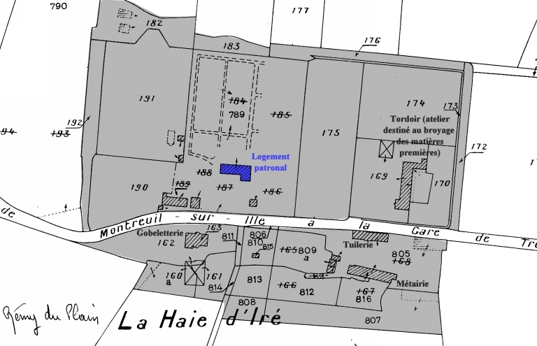 Sous l’Ancien Régime, les seigneurs de la Haie d’Iré exerçaient un droit de haute justice à Saint-Rémy-du-Plain. Les textes nous renseignent sur les propriétaires successifs du manoir. Ainsi, nous savons qu’il appartient à Guillemette de Guitté, le femme de Guillaume de Tullaye en 1442 ; aux de la Villéon, seigneurs de Ville-Marie en 1549 ; aux de la Charonnière, seigneurs de Melesse en 1598 ; aux de la Bellière, seigneurs de Saint-Pierre en 1615 ; aux de Rosnyvinen, seigneurs d’Astillé en 1652 ; aux de Montaudouin, sieurs de la Clartière en 1728 et aux du Plessis, marquis de Grenédan en 1765. Le manoir est confisqué à la Révolution et vendu en 1793 à Monsieur Morin qui fonde quelques années plus tard, à l’aide de deux associés, une verrerie spécialisée dans le verre plat et la fabrication de vases pour la pharmacie et la chimie entre 1803 et 1860. Le manoir abrite alors la fonction de logis patronal.