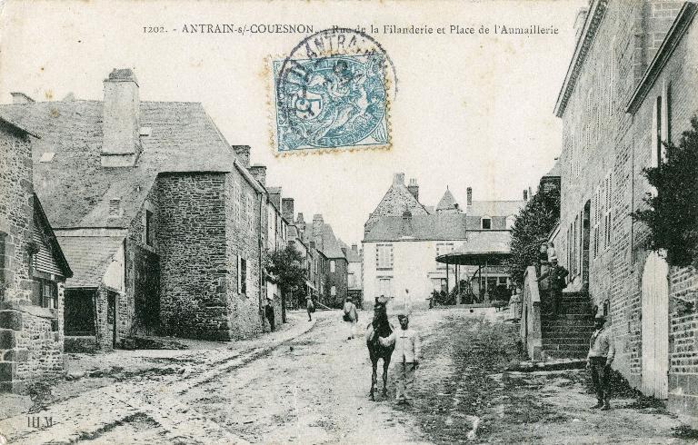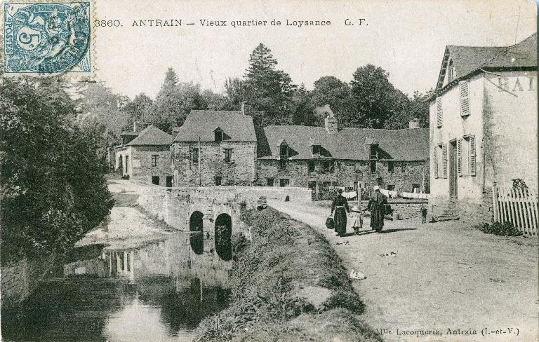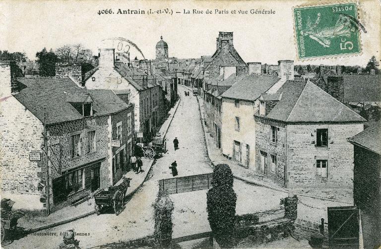 Autrefois, la commune d'Antrain était traversée, selon un axe sud-est/nord-ouest, par l'ancienne route de Paris à Brest. Cette voie de communication importante empruntait les rues Le Hérissé, de l’Église et du Couesnon.