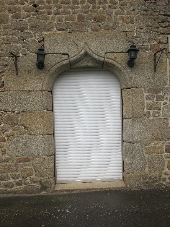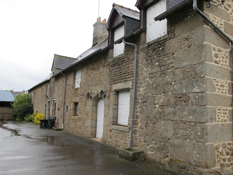La ferme située à l'est de cet alignement comporte une porte en plein cintre moulurée en cavet qui est surmontée d'une accolade. Les pierres d'encadrement de l’ouverture située à gauche de la porte sont chanfreinées. Au-dessus de la porte principale, la fenêtre a conservé sa pierre d'appui moulurée d'origine.