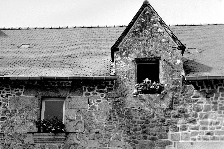 La façade nord donnant sur la route est pratiquement aveugle. La façade principale, de ces deux fermes, est située au sud. Les murs de la ferme sont construits en petit et grand appareil de granite. Les chaînages d'angle sont quant à eux réalisés en très gros appareil de granite et le toit est couvert d'ardoises.