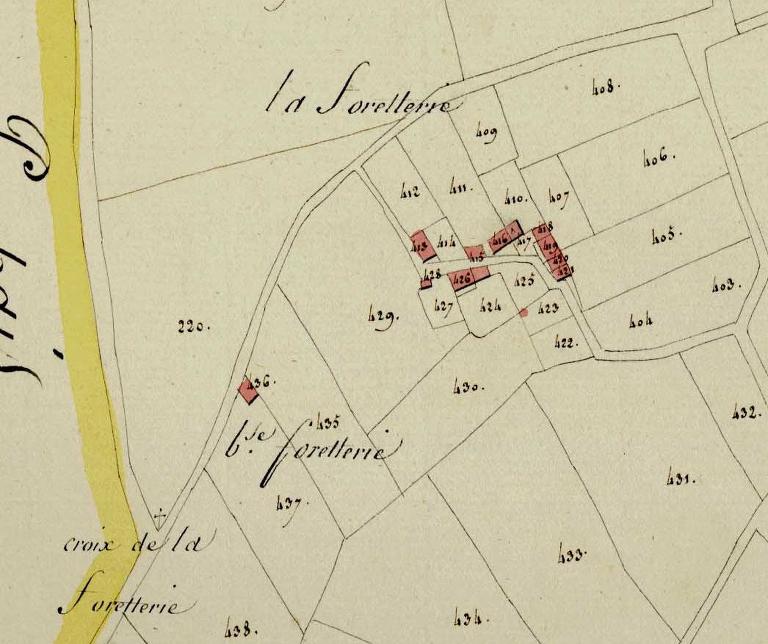 Depuis la levée du cadastre napoléonien en 1811, le village n'a pas changé, on trouve en effet le même nombre de bâtiments. Ainsi le village se compose de trois fermes, d'une maison et d'une croix. Une ferme date du 17e siècle, il s'agit du bâtiment le plus ancien du village, malgré quelques remaniements il conserve des ouvertures anciennes assez soignées peut-être s'agit-il des restes de l'ancien manoir. Le nom de Jean Brunet et la date de 1609 sont portés sur le linteau de fenêtre.