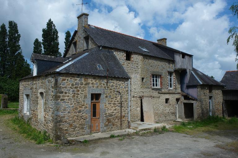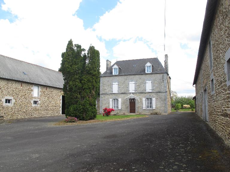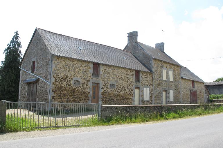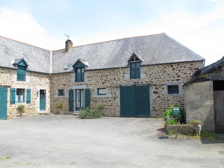 De style ternaire, l’imposante maison à étage carré surmonté d’un comble habitable est très soignée dans sa forme : les murs sont élevés en moellons équarris de granite disposés en assises régulières, le granite taillé ayant été réservé aux encadrements harpés des baies, aux bandeaux, aux souches de cheminées et aux chaînages d’angles. Deux longs bâtiments se faisant face abritent les étables, granges et greniers, fermant la cour sur ses côtés. Les jours destinés à l’aération des étables (granite) et greniers (brique), les portes et gerbières se trouvent disposés à intervalles réguliers sur la façade.
