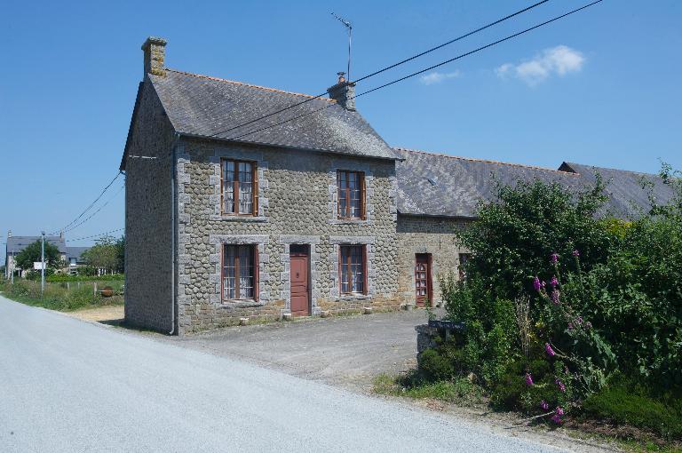 Cette ferme est composée de deux parties dont la partie la plus à l’ouest est une construction plus récente. La partie est correspond sans doute à l’ancien logis à pièce à feu unique ; c’est la partie la plus ancienne. Le linteau de la porte de cette partie de ferme est décoré avec des motifs représentant un calice et une croix. Ces éléments peuvent nous amener à penser que la maison appartenait probablement à un prêtre. Dans le prolongement nous retrouvons les anciennes étables munies de gerbières destinées à recevoir le foin dans les combles à surcroit.