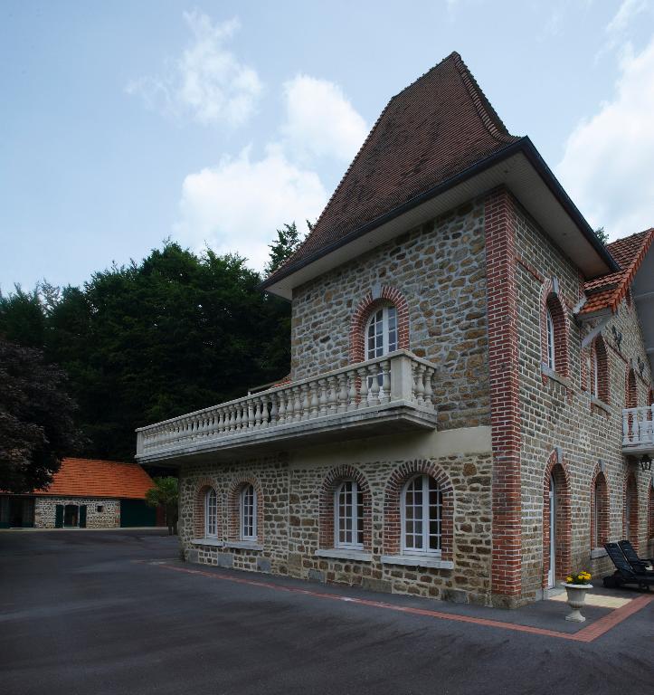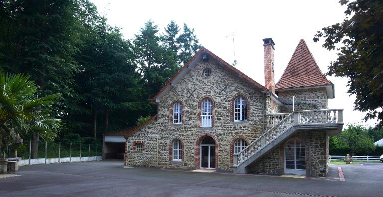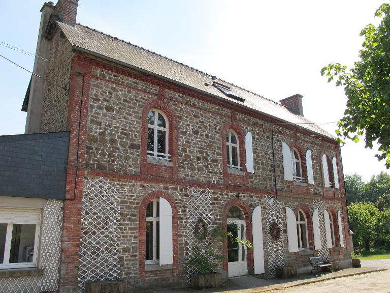 En effet, le relai de chasse de L'Ermitage a été construit dans la deuxième moitié du 19e siècle. Le bâtiment de l'Ermitage est composé d'un corps central de plan quadrangulaire accosté d'un pavillon couvert d'un toit en poivrière d'un côté et d'un appentis de l'autre. La façade principale est rythmée par 4 travées, composées de baies en arcs en plein cintre au rez-de-chaussée et à l'étage. La façade arrière est composée de trois travée et d'une terrasse à l'étage. Seule une cheminée remontant au 17e siècle peut attester d'une construction plus ancienne sur ce site, celle-ci fut sans doute réutilisée dans la nouvelle construction. L'ensemble jouant sur la polychromie entre le granite et l'emploi de brique et de tuiles pour la couverture donne style pittoreque au bâtiment notamment par l'emploi du balcon et de sa balustrade.