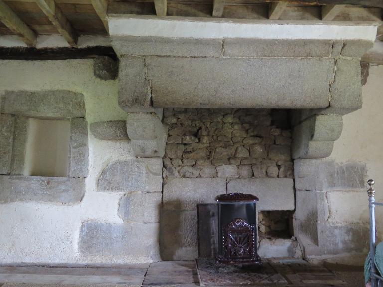 A droite de la cheminée principale (salle), il y a une ouverture menant au cellier, en pierres de taille et linteau en bois et juste au-dessus de cette ouverture, la même ouverture donnant dans la chambre haute. Les pierres de taille de cette ouverture haute sont du côté du grenier ce qui indique qu'un escalier arrivait directement sur cette ouverture. D'ailleurs, une trace de petite ouverture visible de l'extérieur pourrait être le vestige d'un jour qui éclairait la montée de l'escalier.