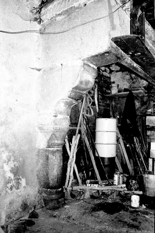 La maison située au 2 rue du Maine fut un café-épicerie de 1864, date de sa construction, à 1945. A l'arrière de cette maison et perpendiculaire à la rue se trouve un autre bâtiment abritant aujourd'hui une dépendance. Il s'agit en fait d'un ancien logis construit au début du 17e siècle par les seigneurs du manoir de Montbrault qui avait été incendié en 1589 par Mercoeur. Cet ancien logis a été complètement réaménagé en 1956 mais conserve cependant une ancienne cheminée de granite très intéressante puisqu'elle provient de l'ancien manoir. Il s'agit d'une cheminée à colonne dont les corbelets supporte un linteau en granite orné d'un écu lisse, il est entouré d'une cordelière, puis d'une guirlande de losange et une branche de chêne. La cordelière est reprise sur la corniche.
