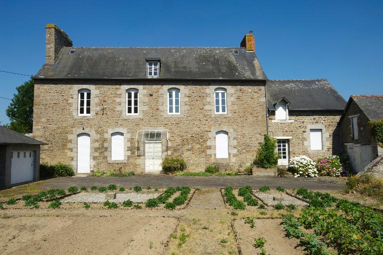 Construit à l’écart du bourg (250 mètres à l’est de l’église paroissiale), le presbytère est formé d’un ensemble de bâtiments répartis autour d’une cour fermée par un mur de clôture. De plan allongé, le corps de bâtiment principal, élevé en moellons de granite, de schiste et de grès, compte un étage carré surmonté d’un comble. La façade principale est percée d’importantes baies en arc segmentaire aux encadrements harpés (granite).
