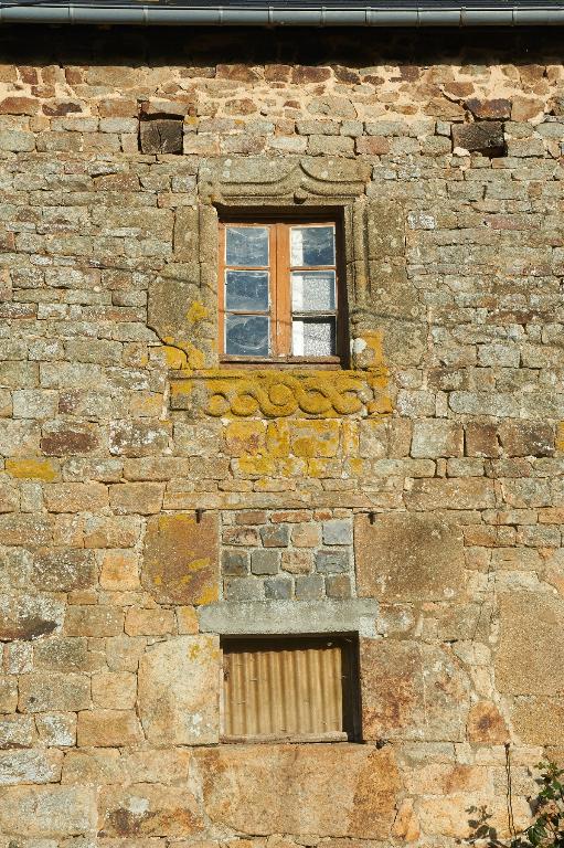 Le logis et les dépendances sont sous le même toit. La façade principale est aspectée au sud. Le bâtiment est de plan rectangulaire, il se compose d'un rez-de-chaussée, d'un étage et d'un comble. L'élévation est sans travée, à noter une très belle fenêtre à l'étage dont l'encadrement est mouluré d'un tore et l'appui saillant décoré d'entrelacs.