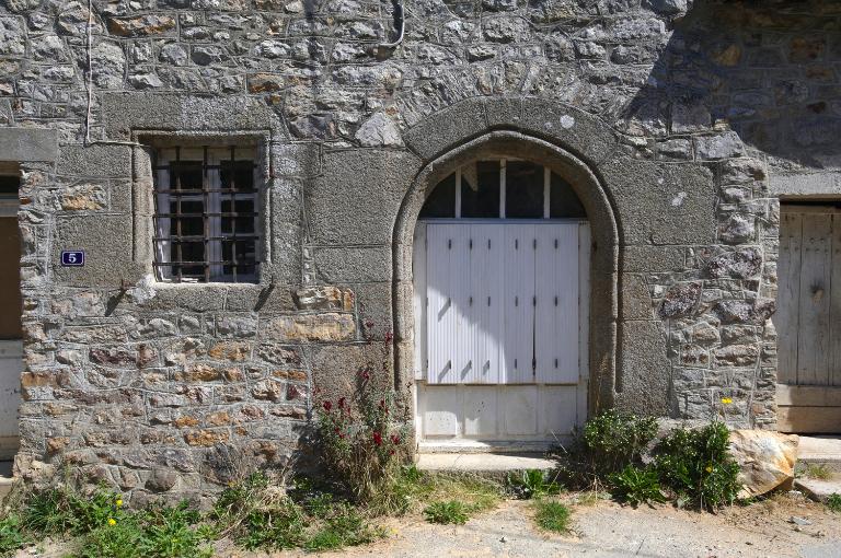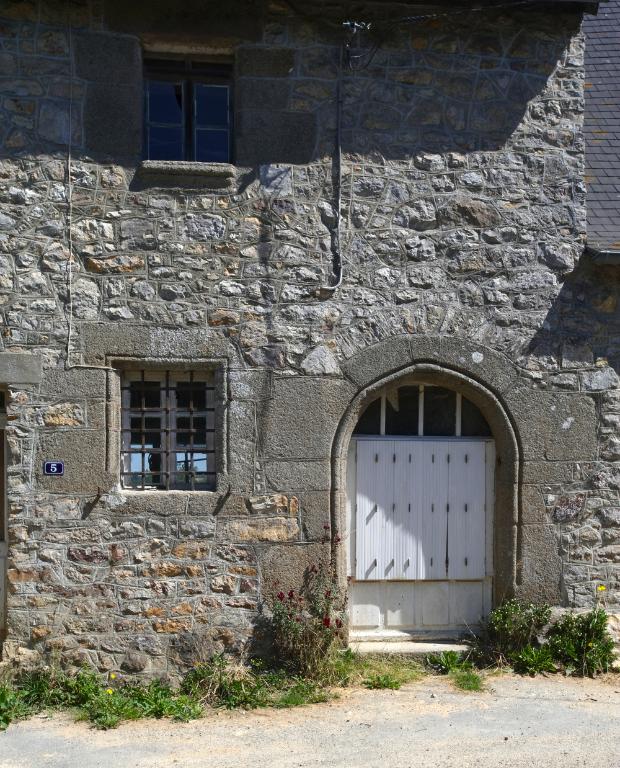 La façade est orientée au sud-ouest. Les murs sont élevés en grès et les ouvertures sont en grand appareil de granite. De plan rectangulaire, la maison se compose d'un rez-de-chaussée, d'un étage et d'un comble. L'élévation est sans travées. La façade est percée d'une porte en plein cintre moulurée d'un tore, d'une fenêtre moulurée et ornée d'une grille, et d'une fenêtre chanfreinée à appui saillant. Une seconde porte a été percée récemment.
