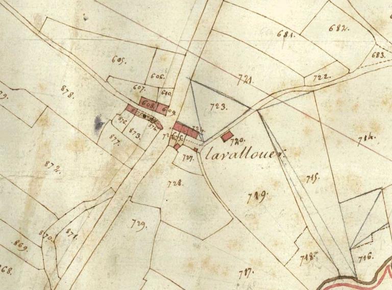 Cet écart se compose de deux alignements de bâtiments situés de part et d'autre de la route. Les deux alignements se composaient sans doute de plusieurs logis.
