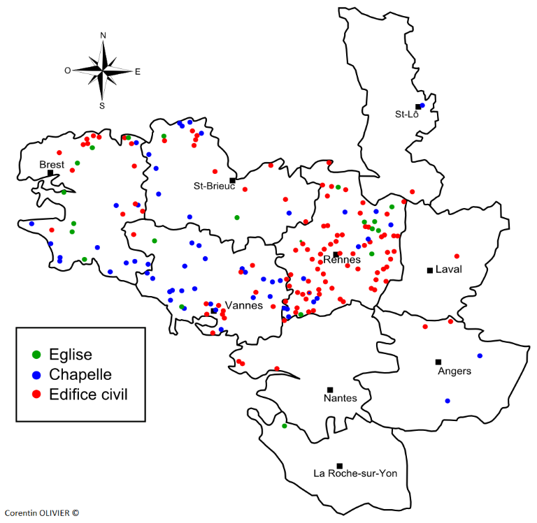D’un point de vu économique, le XVe et le XVIe siècle marquent une période de fort dynamisme. Il est vrai que le duché souffrit moins des désagréments de la guerre qu’une grande partie des régions françaises. La fin du Moyen Âge fut donc favorable à l’essor économique et commercial en Bretagne. Ces deux siècles permirent l’ouverture des campagnes bretonnes qui profita à l’ensemble de la société rurale. D’autant plus que la part des campagnes bretonnes concentre à cette époque l’immense majorité de la population avec une estimation de 93% pour le XVe siècle (CROIX A., 1981, p. 153). A la fin du XIVe siècle et pendant la première moitié du XVe siècle se multiplient les chantiers de constructions, qu’ils soient monumentaux (cathédrales de Quimper, Vannes, Nantes, Saint-Brieuc) ou plus modestes (manoirs, églises, chapelles…). Le travail d’inventaire permet de remarquer qu’un nombre considérable d’édifices sont construits, reconstruits ou aménagés dans le grand ouest de la France à cette période, autant en ville qu’à la campagne. L’essor des manoirs mais aussi des édifices religieux s’inscrit donc dans un contexte de prospérité générale des campagnes et de la société rurale.