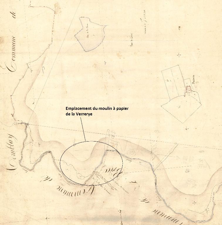 Le moulin à papier de la Verrerye se situe sur la rive droite de la Loisance, entre les moulins à papier de la Galenais et de la Roche-qui-Bruit. Il relève du domaine de Trouançon, dont le manoir est situé sur la commune de Tremblay, sur la rive gauche de la Loisance.