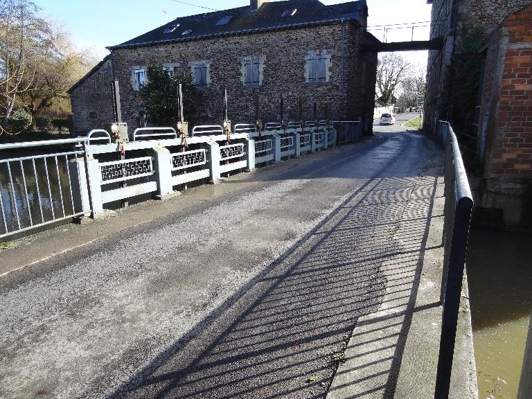 Le pont d’Apigné en est un exemple par son apparence massive. En effet, cette caractéristique correspond bien à son rôle premier, c’est-à-dire le franchissement de la Vilaine, un obstacle naturel. De plus, il doit être résistant afin de permettre le passage quotidien des véhicules allant au Rheu ou à Rennes, ce qui est le cas avec ses matériaux de construction. Proche de l’ancien château-fort, le barrage d’Apigné adopte une position différente et contribue à la régulation du courant avant d’atteindre le moulin, situé légèrement en contrebas. Ces deux ouvrages sont les seuls éléments permettant le franchissement de la Vilaine entre les deux communes. L'écluse correspond à l’architecture principale du site mettant en lien le transport terrestre et fluvial. En outre, elle joue le rôle de pont pour les véhicules mais aussi de passage pour les bateaux. Grâce à son sas, l’écluse régule le passage des bateaux tout en contrôlant le niveau de l’eau, ce qui participe au fonctionnement du moulin.