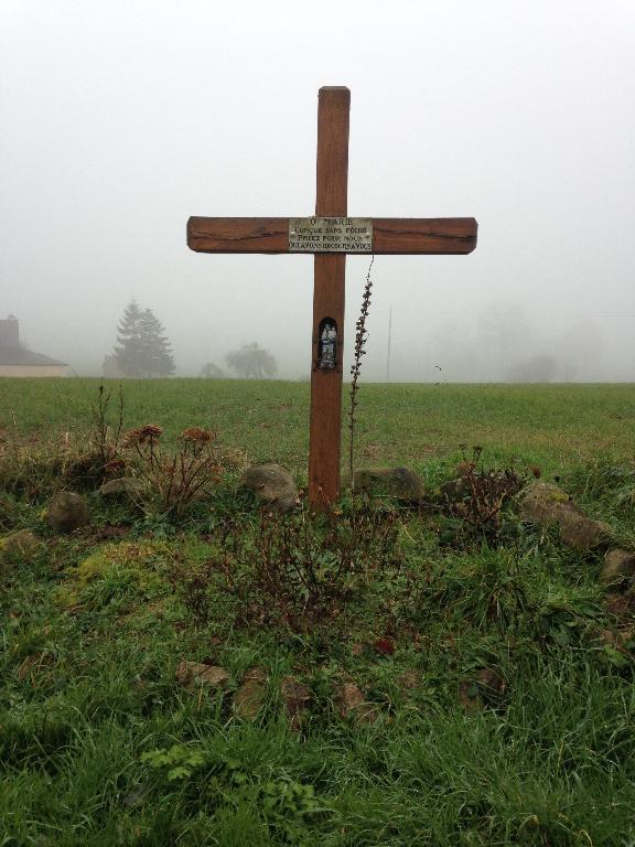 - Croix de l'Ecu, 20ème siècle: croix en deux pièces de bois. Inscription sur plaque dédiée à Marie « O Marie, conçue sans péché. Priez pour nous qui avons recours à vous.». Niche sculptée dans le fût accueillant une statuette de la vierge à l'enfant.