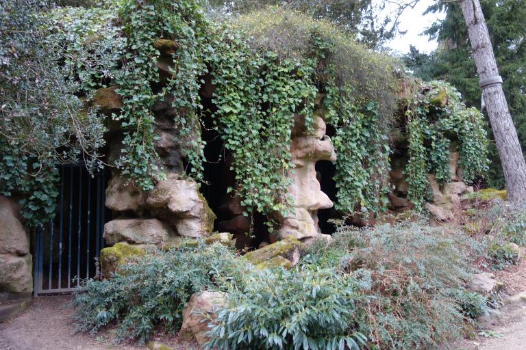 En novembre 2010, en raison de risques de chute d'éléments de décor, les accès à la grotte artificielle sont fermés (par des grilles à barreaudage), et envahis par le lierre, en attendant une rénovation complète de cet espace. Des cartes postales anciennes montrent un intérieur un peu sombre dallé de grandes pierres plates entre lesquelles ruisselle de l'eau.
