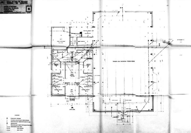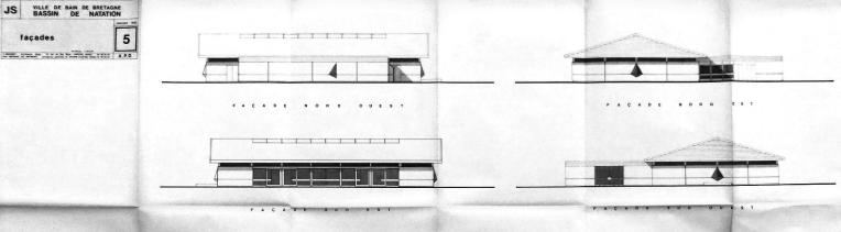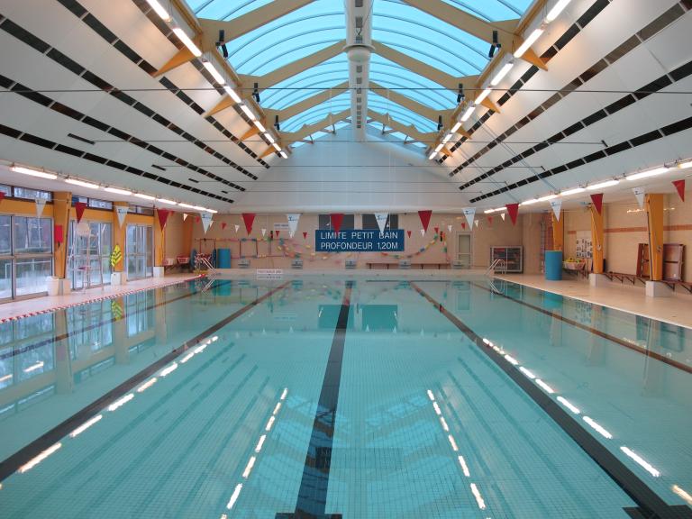 La piscine conçue par Y. Moignet ne comprenait à l'origine qu'un bassin de natation de 25 m x 12,50 m pour une profondeur de 0,80 m à 2,00 m. Une pataugeoire et un spa lui furent adjoints par la suite.