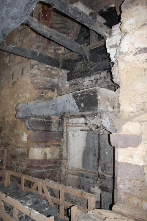 Le rez-de-chaussée est aujourd'hui éclairé par une baie dont l'encadrement est en schiste pourpre. Le premier étage était éclairé par une fenêtre à coussiège (aujourd'hui bouchée). A côté de cette fenêtre se trouve la trace d'un arc qui aurait été réutilisé postérieurement à la construction de l'ensemble. Les deux niveaux d'habitation accueillaient chacun une cheminée, adossée au mur est. Celle du premier niveau est construite en brique, selon un appareil en épis.