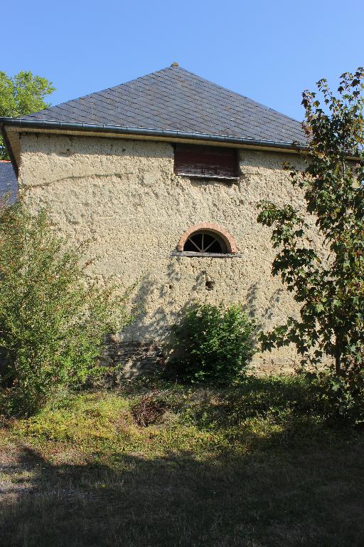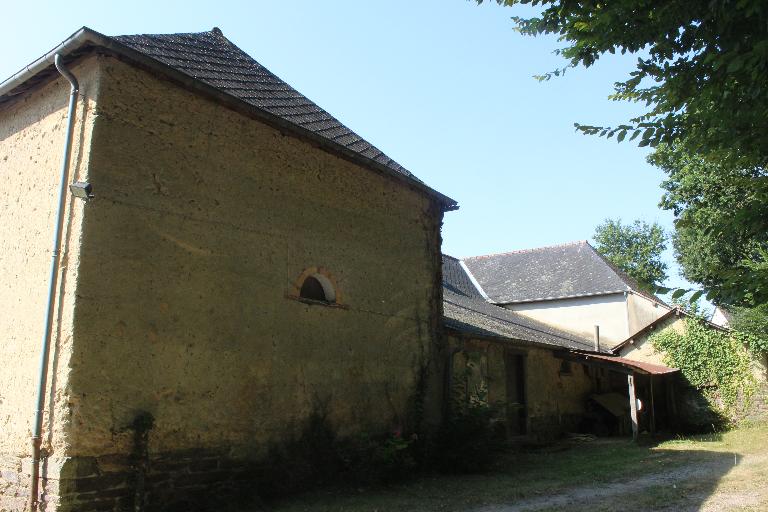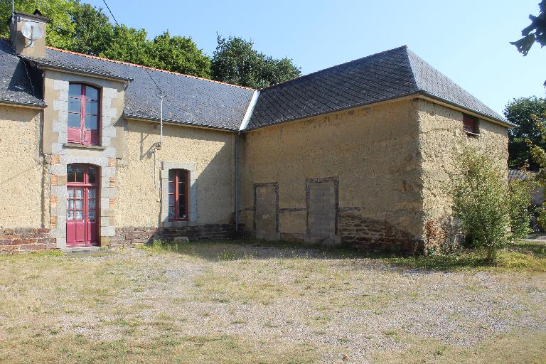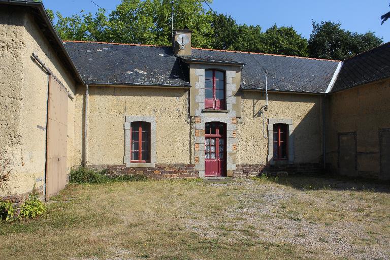 Cette ferme " modèle" de plan en H est orientée vers le sud. L'ensemble en rez-de-chaussée est surmonté de combles, et couvert d'un toit à croupes. Les murs en terre reposent sur un solin en moellon de schiste. Au niveau de l'aile ouest une grande porte charretière ouvre sur une grange éclairée par des ouvertures en demi-lune en brique. L'aile nord abritant l'habitation présente une façade soignée à trois travées. Les ouvertures sont en arc segmentaire en granite, et une grande gerbière accentue la travée centrale. Un grand cellier en pan de bois et torchis, est accolé sur toute la longueur à l'arrière de cette aile. Au niveau de l'aile est, deux portes muréesi donnaient à l'origine sur la cour.
