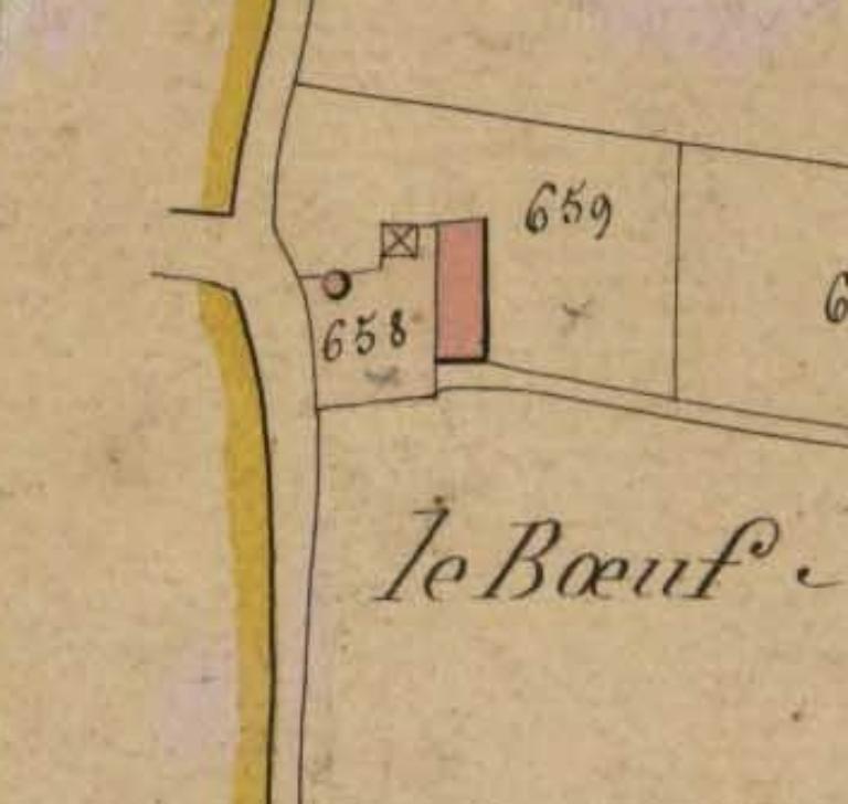 Ferme du 18e siècle, représentée sur le cadastre de 1829, elle fait partie de l'écart du Boeuf. Ouvertures reprise à la fin du 19e siècle. Création de plusieurs baies à cadre bois, dans le respect du style originel, sur la façade sud et le pignon ouest dans le premier quart du 21 siècle.