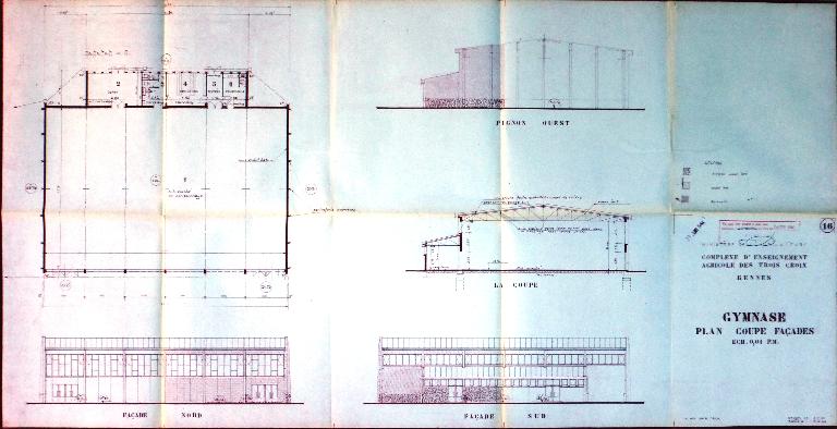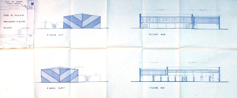 L'établissement est l'héritier du complexe agricole des Trois Croix, devenu lycée de Villejean et doté de son nom actuel en 2005. Les bâtiments, incluant un gymnase, ont été construits en 1965 sur les plans de l'architecte Albert Hec, le permis de construire étant signé le 16 novembre 1964. Une délibération du conseil municipal, le 3 mai 1982, décide la restructuration et l'extension du gymnase, jugé vétuste et ne permettant pas la pratique de toutes les disciplines du sport scolaire. Les travaux, estimés à 2 905 000 F, sont conçus par le service des Bâtiments communaux (Roger Faraut architecte).