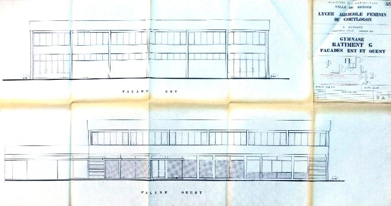 Les plans de ce qui était alors le lycée agricole féminin de Coëtlogon sont donnés en 1966 par Roger Besnard. Le permis de construire est délivré le 27 mars 1968. Le gymnase fait en 1996 l'objet d'une restructuration confiée à l'architecte Christian Coüasnon.