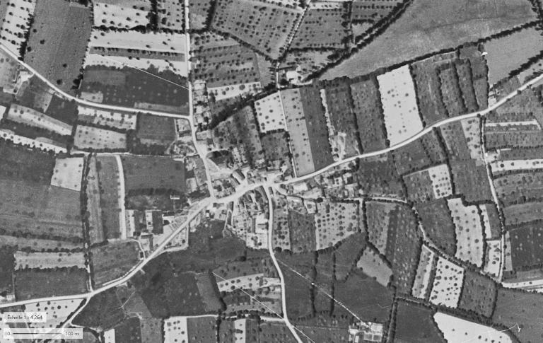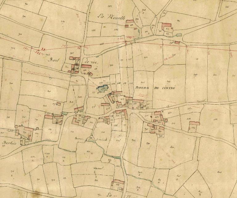 L'urbanisation du bourg de Cintré est finalement assez récente comme le confirme une photo aérienne prise dans les années 1950. Comparée au cadastre napoléonien de 1829, cette vue indique que le bourg a très peu évolué entre le 19e siècle et le début de la seconde moitié du 20e siècle.