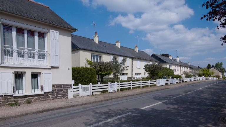 Les constructions présentent une certaine homogénéité. La totalité des maisons sont élevées en parpaings de ciment recouverts d’un enduit de couleur claire. Le soubassement en schiste maçonné, caractéristique du bassin rennais, est réemployé pour les maisons ouvrières. Les charpentes sont en bois. La toiture est composée d’un toit mansardé avec une ou plusieurs lucarnes et recouverte d’ardoises. Ces constructions possèdent un garage juxtaposé à l’habitation. Les maisons sont toujours délimitées par une clôture en béton de ciment peinte en blanc avec une haie et un jardin.