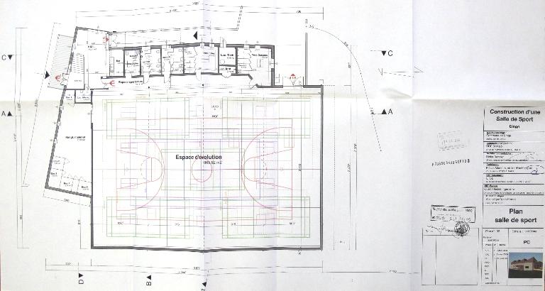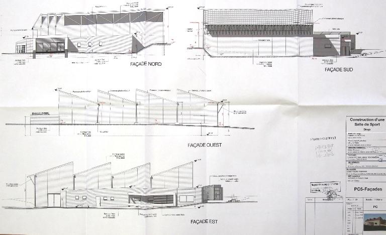 Installé dans une zone vouée aux sports et aux loisirs, l'équipement comprend une salle de sports de 865 m2, des vestiaires-sanitaires, un hall avec espace bar et des locaux rangement, ménage et techniques. Des panneaux photovoltaïques garnissent la toiture.