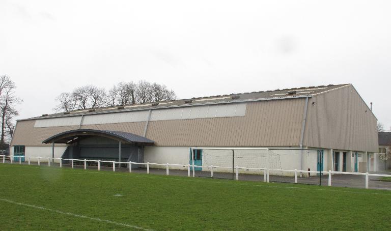 Salle multisports de 48,60 m x 23,30 m avec aire de jeux de 38 m x 18 m et annexes, construite en bordure du terrain de football.