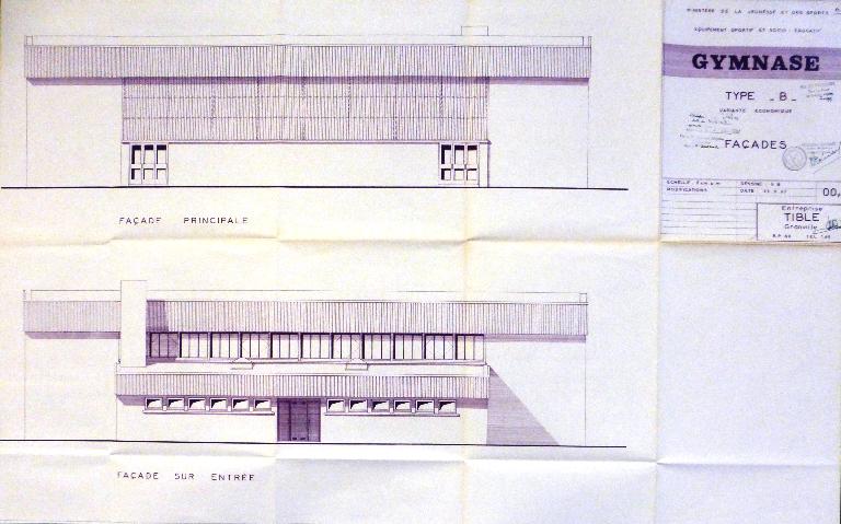 Bon exemple de gymnase scolaire de la fin des années 1960, construit par l'entreprise granvillaise Tible. Celui du groupe scolaire Brest-Verdun, qui appartenait à la même commande, a été démoli.