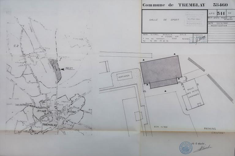 Le complexe sportif de Tremblay a été construit en deux temps. Le 24 mars 1981, le conseil municipal approuve un projet de salle omnisports conçu par Y. Guisnel, qui fait l'objet d'un arrêté d'approbation technique le 18 février 1982, pour une dépense subventionnable de 1 490 000 F. Le permis de construire est délivré le 26 juillet suivant, et les travaux s'achèvent le 6 juin 1983. Vingt-cinq ans plus tard, on met à l'étude, sous la maîtrise d'ouvrage d'Antrain Communauté, la rénovation-restructuration de cette salle et la construction d'une salle de tennis de table reliée à la précédente par un bloc central abritant diverses annexes. Le permis de construire en est signé le 17 février 2009, et le chantier se termine le 19 novembre 2010.