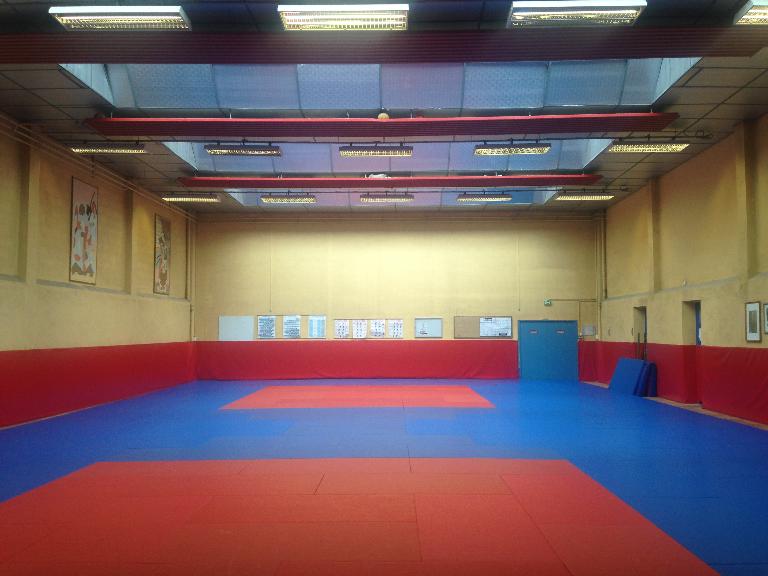 Au lendemain de la Libération, le cercle Paul Bert de la rue de Paris disposait d'une salle de gymnastique en bois construite par Emmanuel Le Ray en 1911 et d'une salle en béton conçue en 1934 par le même architecte pour la section féminine. Le 20 juillet 1955, le conseil municipal adopte le projet d'une nouvelle salle omnisports établi par M. Bodénez, architecte adjoint de la ville. Celle-ci est construite en 1956 "par emprise sur la cour et partiellement sur une petite salle préexistante mais dont les dimensions ne permettaient pas la pratique des sports collectifs", et inaugurée le 7 avril 1957. Des transformations sont opérées en 1980 : le 14 avril, le conseil municipal approuve le dossier technique présenté par P. Pothier, architecte du service des Bâtiments communaux, consistant à transformer l'ancienne salle omnisports en salle de gymnastique et la salle de gymnastique en dojo. Le projet bénéficie d'un arrêté d'approbation technique le 9 juillet et d'une subvention de 266 000 F au taux de 29,97% le 29 octobre. La réception des travaux est prononcée le 8 décembre.