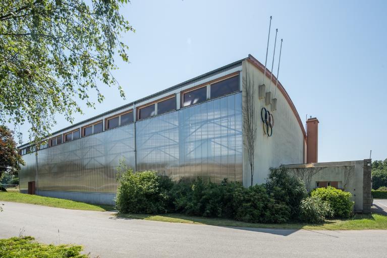 Construit dans l'angle sud-ouest du terrain de l'ASPTT, le premier bâtiment comprend un vaisseau principal de 45,50 m x 27,00 m constituant la salle omnisports proprement dite, et sur le pignon nord-ouest, un bâtiment annexe de 28,35 m x 9,70 m abritant les services sanitaires (douches, w.c.), le hall d’entrée, les locaux des arbitres, les guichets, le dépôt de matériel et la chaufferie. L'ossature de la salle est une charpente en lamellé-collé avec ancrages et tirants en béton armé. La couverture est en feuilles ondulées préfabriquées en chlorure de polyvinyle avec bandes opaques et translucides alternées. Le logement du gardien est édifié en face, au nord-est. En 1979, on lui adosse de nouveaux locaux : foyer (142 m2), salle de réunion (88 m2), salle de tennis de table (158 m2) et salle d’éducation physique (195 m2). Les tennis couverts sont implantés plus au nord-est en 1983.