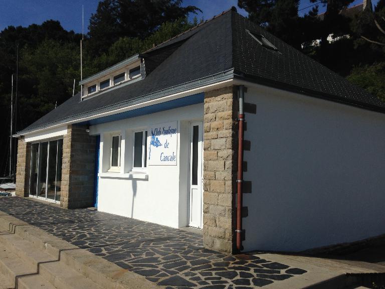 Le club de voile de Cancale est créé au cours de l'été 1960. Le 4 mai 1962, le projet de construction d'un club house - conçu par l'ingénieur M. Saër - bénéficie d'un arrêté d'approbation technique, suivi le 23 novembre d'un arrêté de subvention de 23 000 F au taux de 46%. La réception provisoire des travaux a été prononcée le 12 juillet. Une extension est réalisée en 1994 par J.-F. Revert, architecte urbaniste à Saint-Malo.