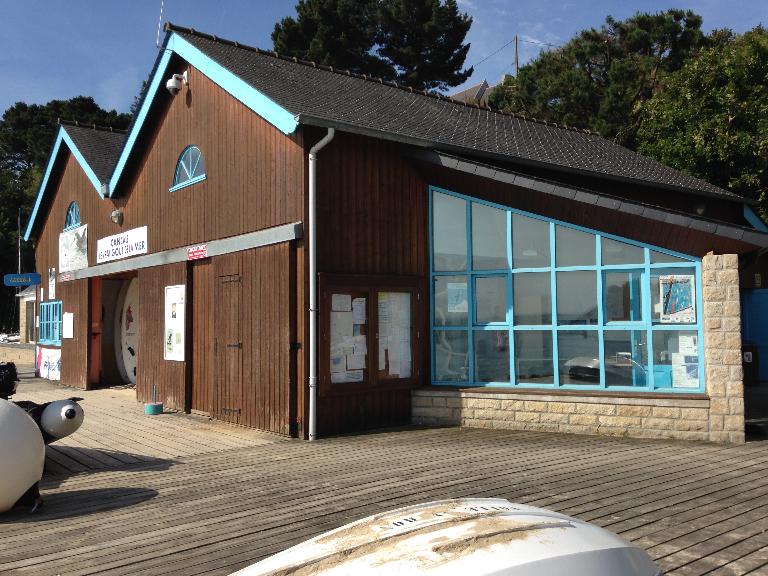 L'élément le plus ancien du centre nautique est un pavillon néo-breton bâti en 1962, construction traditionnelle de 100 m2 environ au sol comprenant grande salle de cours de 6 x 6 m, bureau du chef de centre 4,02 x 2,50 m, sanitaires et pièce pour les moniteurs de 5,40 x 2,10 m avec une vaste terrasse du côté de la mer. En 1994 lui ont été adjoints deux hangars en bois abritant : local commun, vestiaires-sanitaires, salle de cours, bureaux et espaces de stockage.