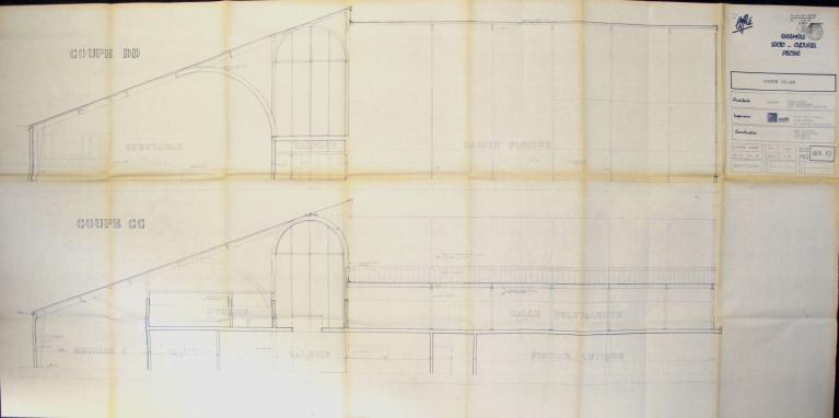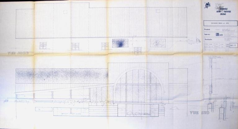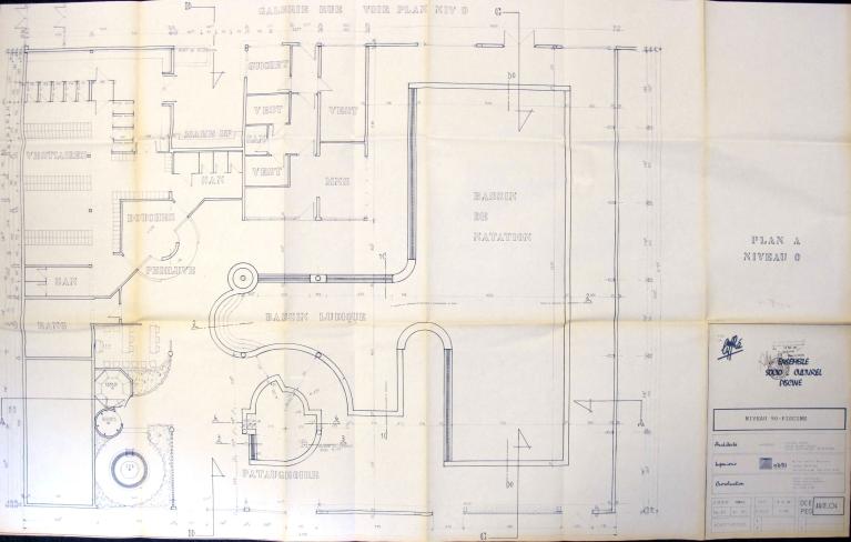Exemple intéressant de piscine du début des années 1990 intégrée dans un complexe à vocation culturelle et sportive.