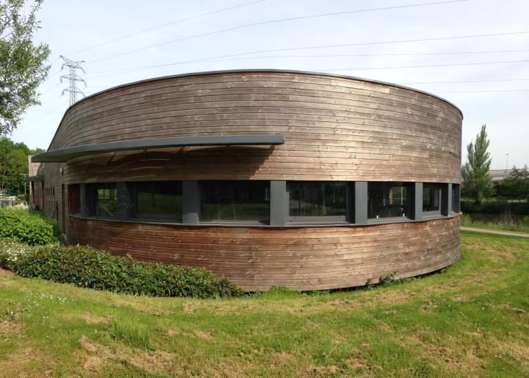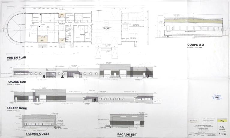 Disposé parallèlement au cours de la Vilaine, l'équipement abrite, de l'est vers l'ouest : hangars, atelier et local matériel ; vestiaires, sanitaires et buanderie-séchoir ; hall d'accueil ; bureau, salles de cours, de détente, des ergomètres et médicale ; enfin, une salle de musculation dans la grande rotonde. Le choix du bois (H.Q.E.) résulte d’une volonté d’utiliser un matériau noble et naturel qui permet de s’intégrer complètement dans le paysage tout en ayant des performances thermiques, le bâtiment ayant une consommation énergétique minimisée.