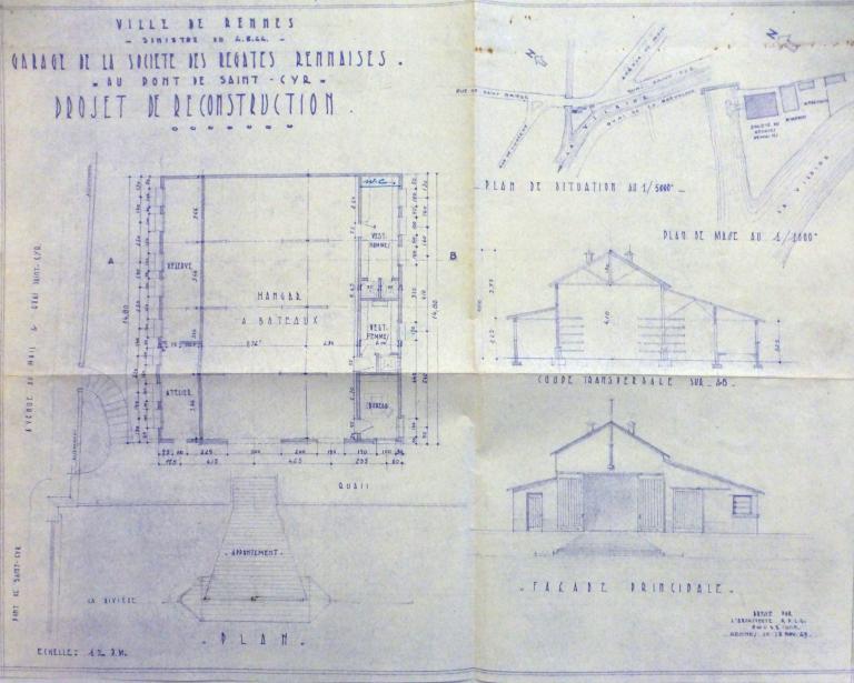 Équipement fonctionnel, sans ambition architecturale, mais dont les dimensions devaient permettre d'accueillir plusieurs associations : Société des Régates rennaises, Canoë club/kayak club, Touring club de France, Hospitaliers sauveteurs bretons, etc.