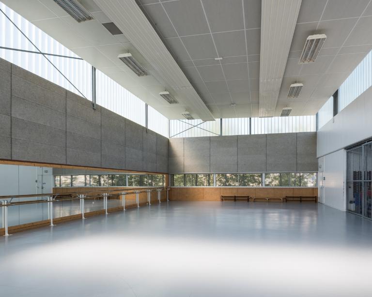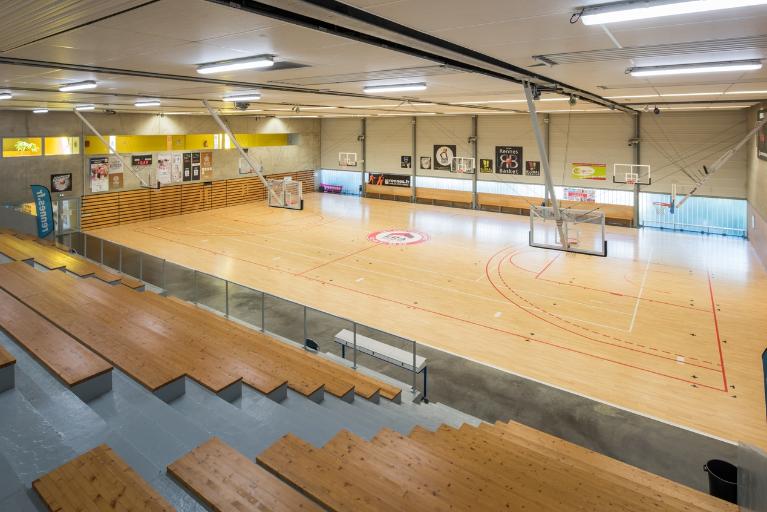 Cet équipement de quartier d'une surface hors-œuvre de 2234 m2 regroupe dans un même bâtiment une salle multisports d'une capacité de 600 places en gradins, une salle de gymnastique, des vestiaires, un foyer sportif, une salle de quartier, des bureaux et une salle de réunion.