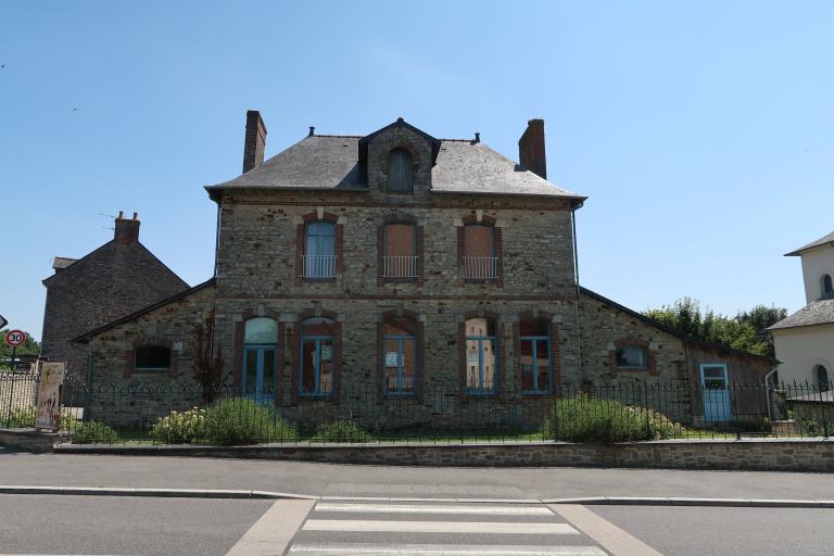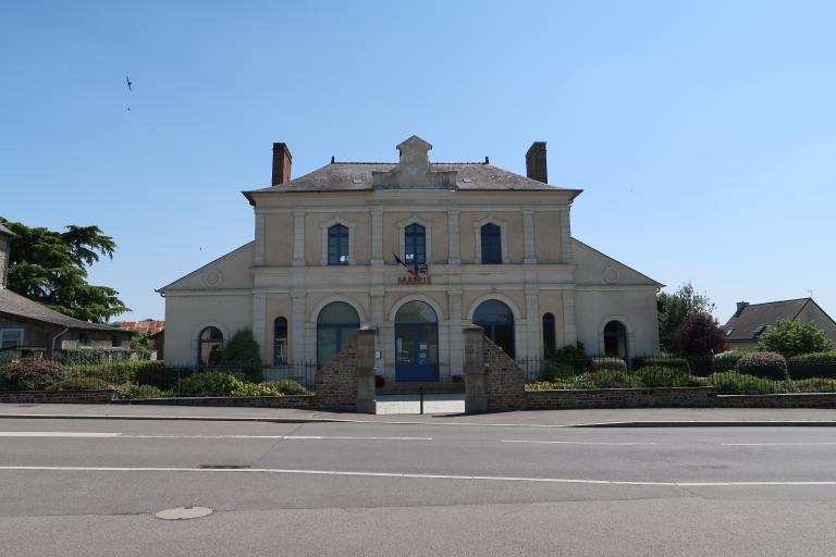 Mairie-école des garçons-Justice de Paix, rue Chateaubriand (achevée en 1885). Le bâtiment se distingue des autres constructions du bourg par son implantation en cœur de parcelle, ses volumes imposants, son toit en croupe, son enduit clair et son vocabulaire architectural avec pilastres et entablements. Au rez-de-chaussée, trois grandes arcades desservent les espaces intérieurs. Les ouvertures de l'étage carré ont des arcs en mitre. A ce niveau est situé le logement de l'instituteur. C’est une architecture caractéristique des édifices publics de la fin du 19e siècle. L’entrepreneur est Monsieur Brossard.