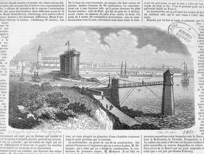 Le marégraphe de Saint-Servan, inauguré en 1850 et toujours en activité, est l'un des cinq premiers marégraphes inclus dans le réseau imaginé par l'ingénieur Antoine Chazallon (1802-1872), le père du réseau marégraphique français. D'abord qualifié de "puits de marée" par son concepteur, ce type de marégraphe équipé d'un flotteur et d'un stylet enregistre les variations du niveau de marée et s'inscrit dans une volonté d'étude des marées sur le long terme.
