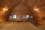 La poudrière est couverte d'un toit terrasse sur voûte en berceau de béton, entourée d'une clôture en moellons de pierre en partie détruite. L'édifice a conservé sa structure, identique à celle du Mentec et à celle des poudrières en général : plan allongé à vaisseau unique voûté en berceau continu avec jours de ventilation. Il existait un second niveau sous voûte. Les sas, situés de part et d'autre de la poudrière, abritent chacun deux entrées en chicane. Une des entrées possède un passage latéral, compris dans l'épaisseur du mur, conduisant à un escalier en vis de granite menant au second niveau.