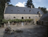 Sur l'élévation sud, une niche carrée à compartiments abrite quatre bustes en ronde-bosse figurant peut-être un couple de paysans avec ses enfants en costume local. Ce décor particulièrement original est peut-être dû aux frères Cabedoche, maçons-sculpteurs, auteurs de nombreuses croix des environs. D'autres décors sculptés sur les façades des maisons à Melrand, dans le deuxième quart du XIXe siècle, sont d'une facture comparable.